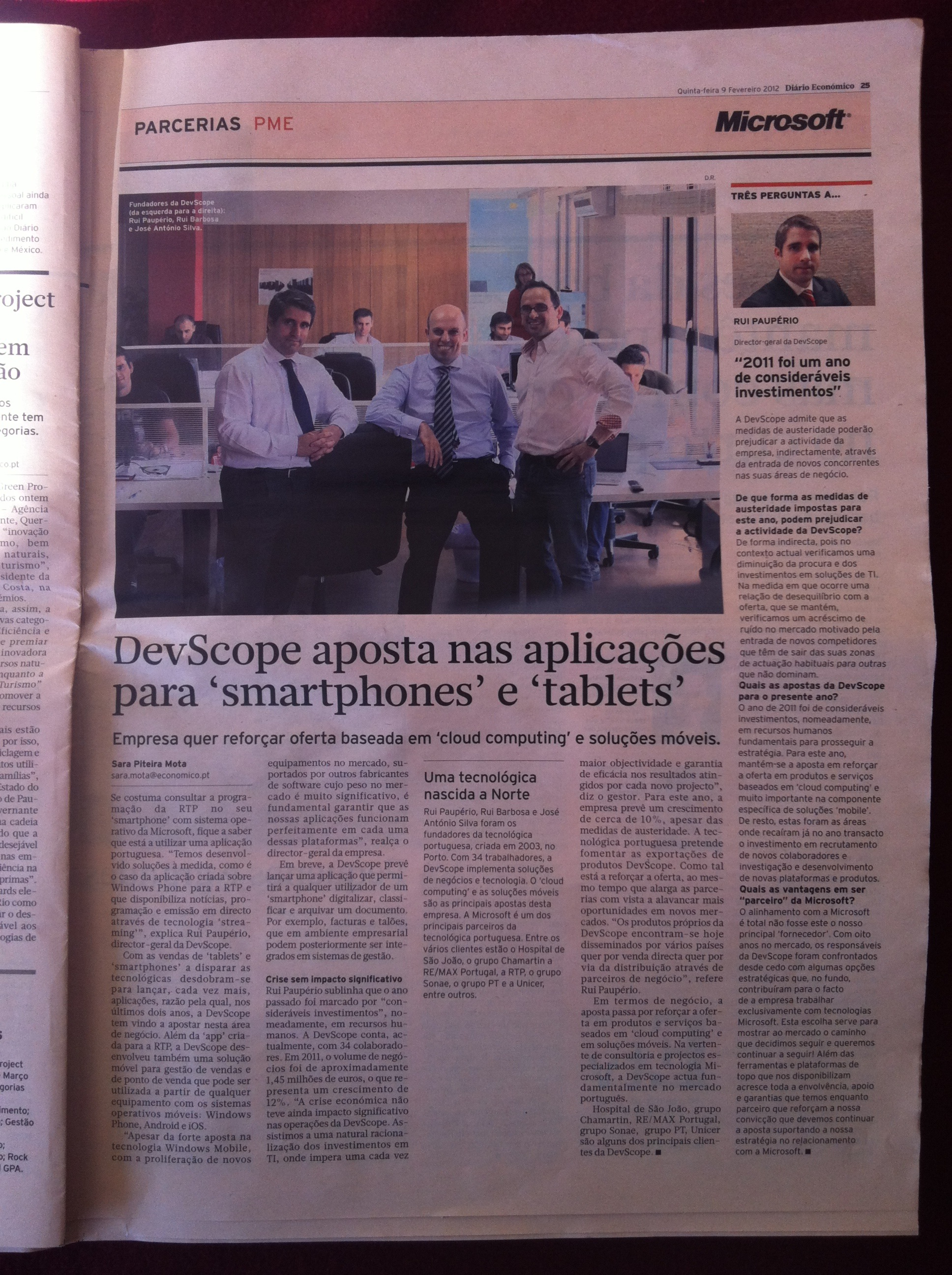 Ler entrevista Balanço positivo com destaque para os bons resultados gerados pelas apostas realizadas em produtos próprios e em soluções baseadas em SaaS. Saiu também reforçada a… Read more “DevScope cresce 12% em 2011”
